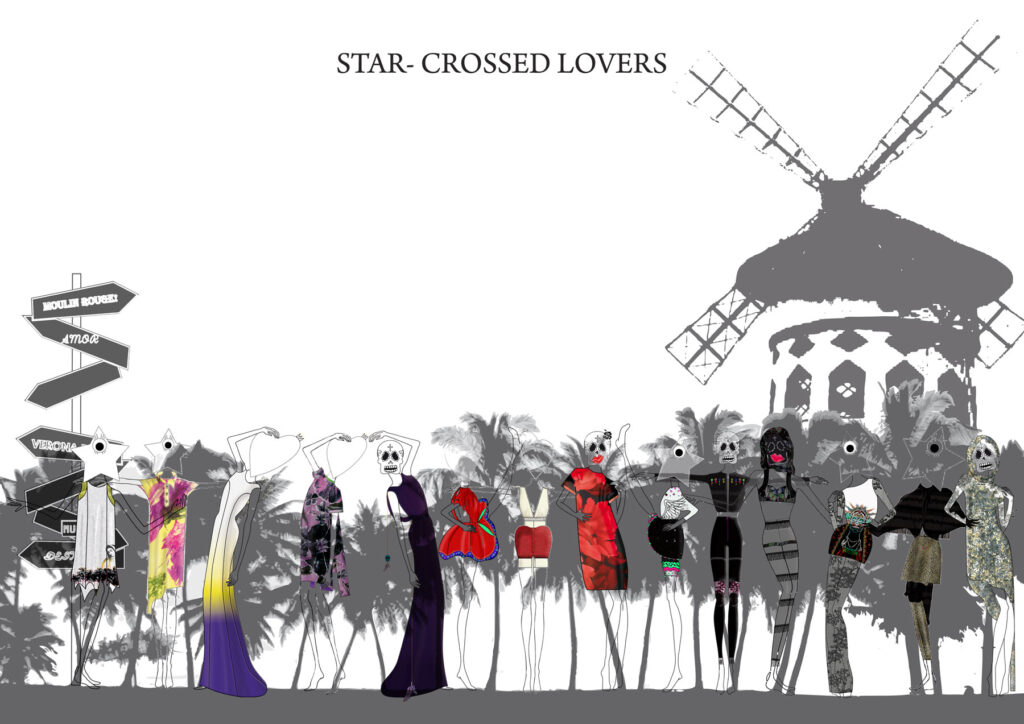 Destino, Amor y Muerte. Está repetición se lleva a cabo en los films y en el diseño de la colección, de estética “kitsch”, dónde su amor, está condenado a no cumplirse. Es el Amor después de la muerte.